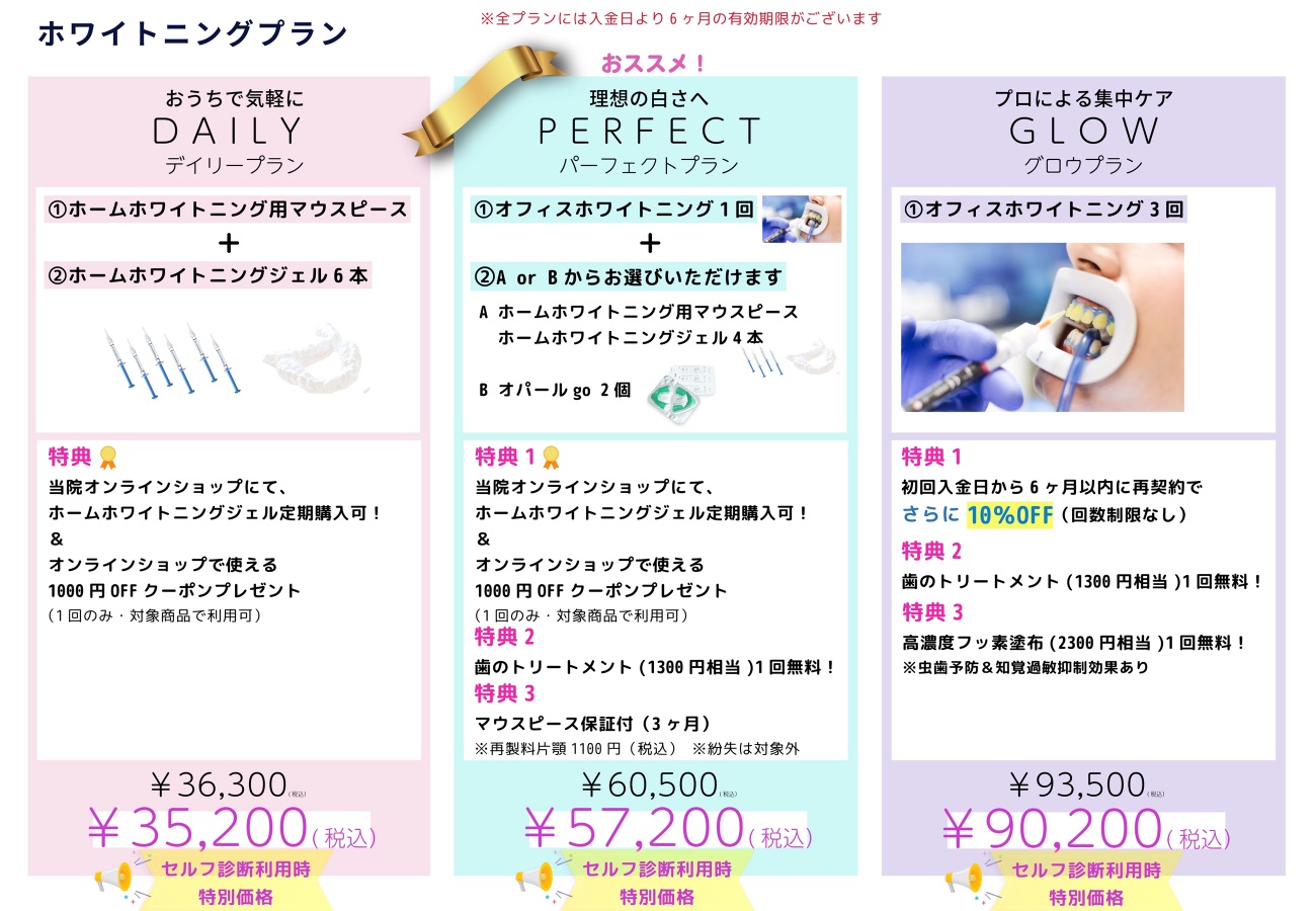 患者様ご自身で行っていただくプランで、ご自身のペースで歯を白くしたいという方にご提案しています。